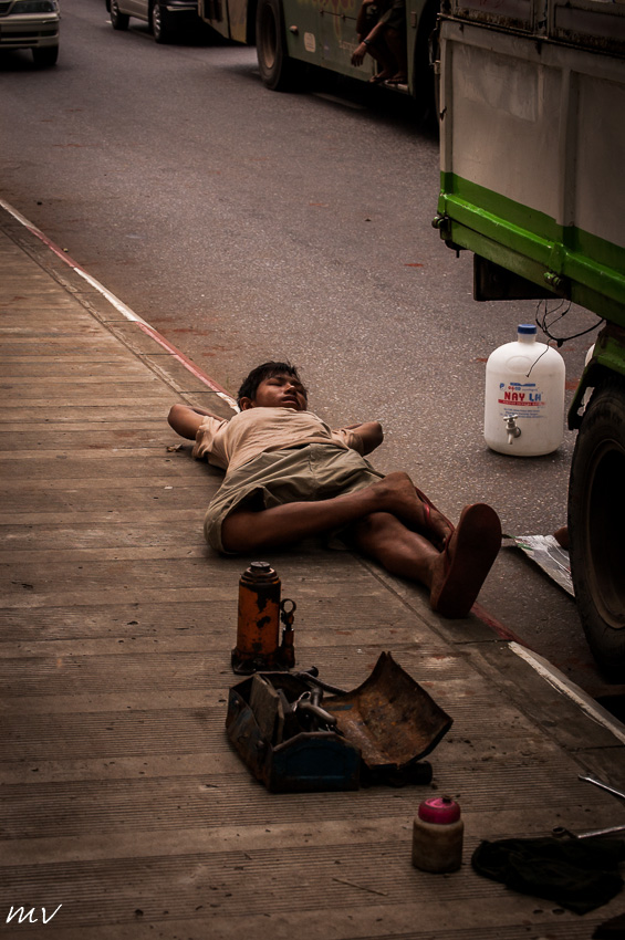 Σε ένα ίδιο ταξί από αυτά που είναι σταματημένα στην κίνηση βρίσκομαι πάλι. Μαζί με εμένα και ένα ζευγάρι Βιρμανών. Ο οδηγός ταξί με ρωτάει κάτι αλλά δεν καταλαβαίνω. Η κοπέλα που κάθεται στο πίσω κάθισμα μιλάει αγγλικά και μου εξηγεί. Και αφού μας βοηθάει στην επικοινωνία με τον οδηγό με ρωτάει εάν είμαι από την Ισπανία. «From Greece» της λέω και μου λέει «Oh Olympic Games» .