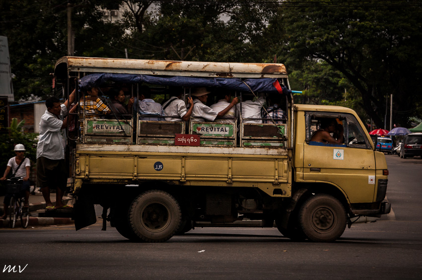 Στην Yangon ο βασικότερος τρόπος να μετακινηθείς είναι τα ταξί. Στους δρόμους κυκλοφορούν βασικά ταξί και ένα από τα βασικότερα επαγγέλματα είναι οδηγός. Πρακτικά αυτό σημαίνει ότι η κίνηση στους δρόμους της πόλης είναι καθημερινή και απρόβλεπτη. Ποτέ δεν ξέρεις που θα σε πετύχει και πόσο θα σε πιάσει. Άγνωστη λοιπόν είναι η ώρα που θα φτάσεις στο ραντεβού σου.