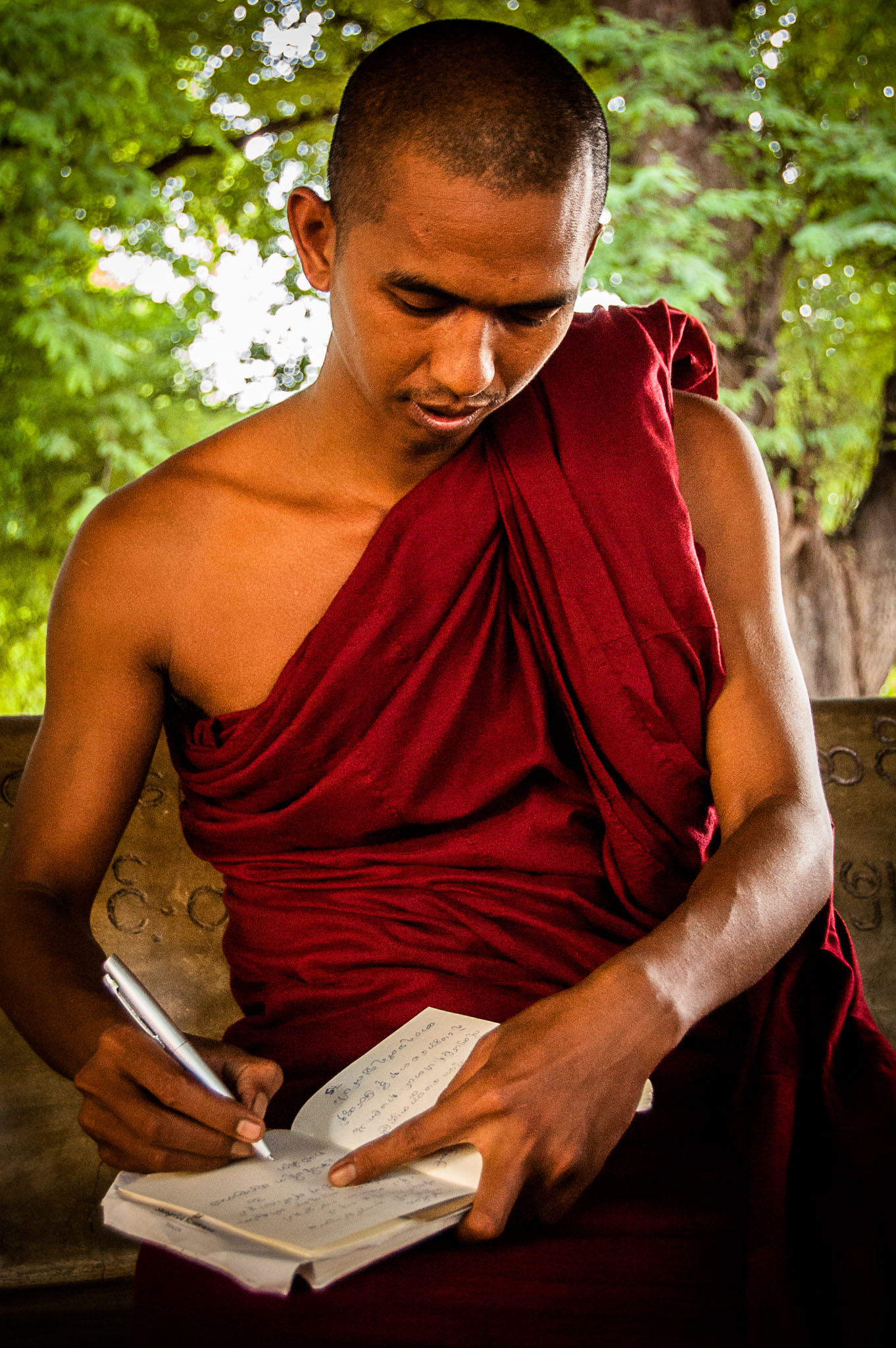 Προσκυνώ σε μια pagoda που συναντώ πιο κάτω, ένας μοναχός νεαρός με πλησιάζει και με καλησπερίζει. Είναι 24 χρονών και τον ρωτώ πως αποφάσισε να γίνει μοναχός, αν θέλει παιδιά και οικογένεια και αν μπορεί να δει τους γoνείς του.