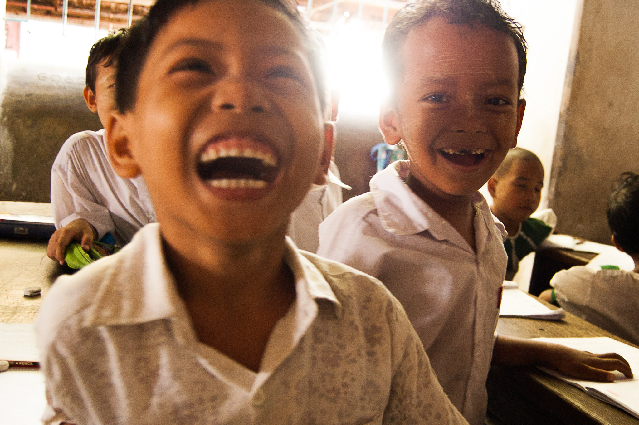 Οι δασκάλες δεν μου λένε κάτι. Χαμογελούν και συνεχίζουν την δουλειά τους. Παίζω λίγο με την φωτογραφική μου και βγάζω τα πιτσιρίκια που γελούν τόσο αθώα και θέλουν να δουν τι έχω τραβήξει. Χαιρετάω στα Βιρμανέζικα «Μινγκλαμπαρ» και προχωρώ.