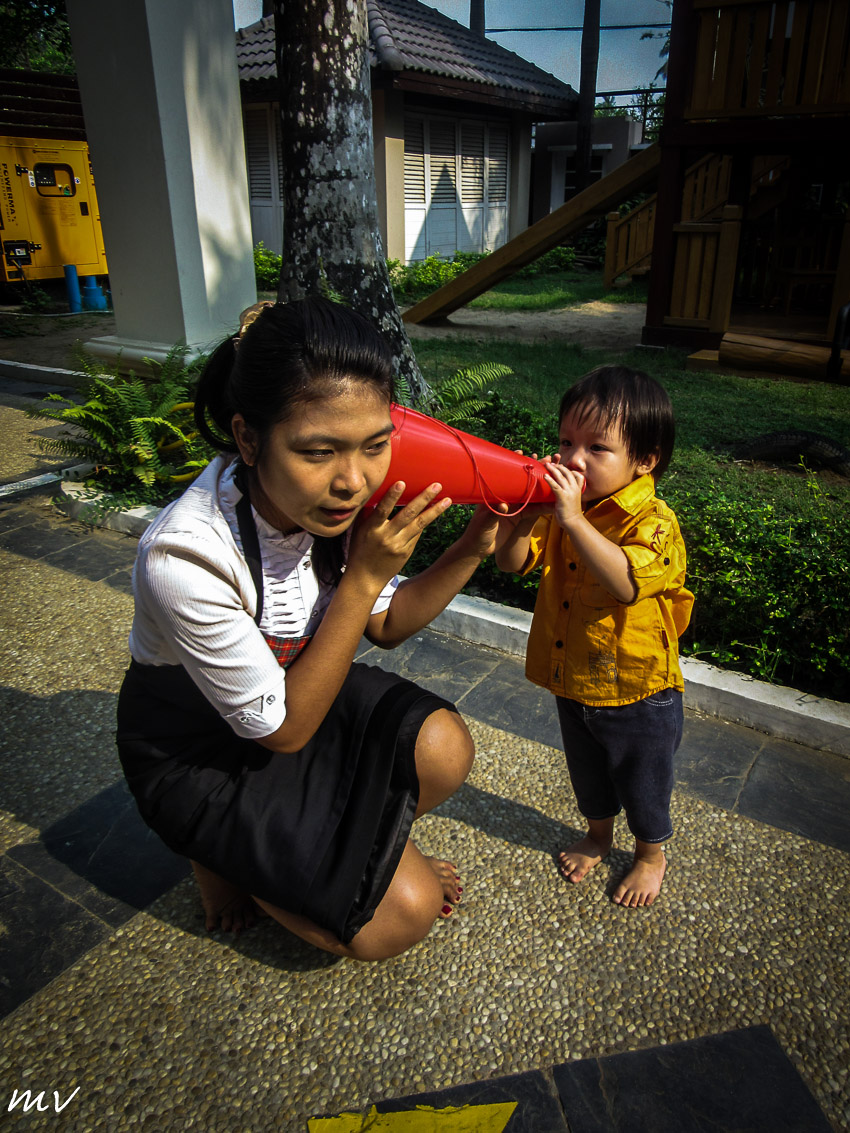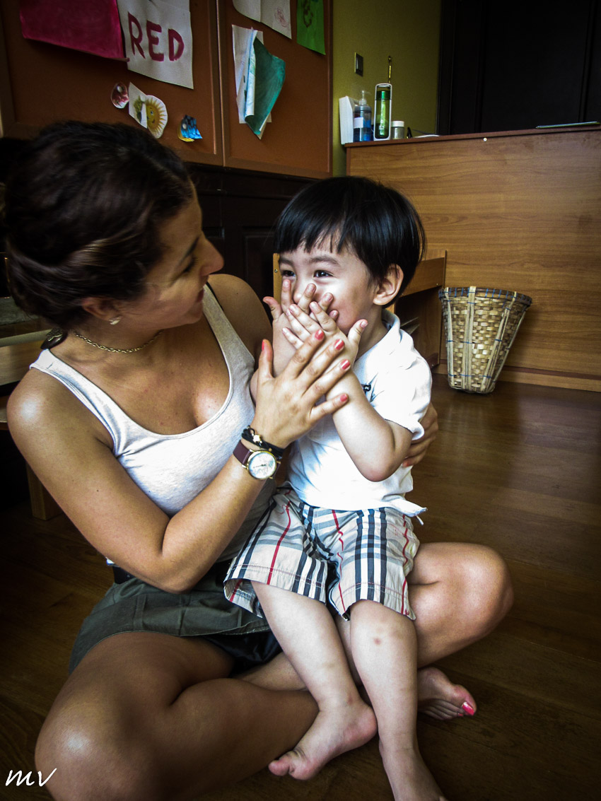 την μητέρα του να του λέει τα χρώματα και τα ζώα στα αγγλικά, της πρότεινα να