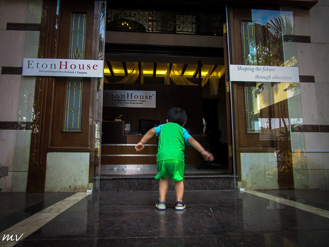 πρώτη μέρα, είναι δύο χρονών και στέκεται πίσω από την πόρτα που μόλις έχει