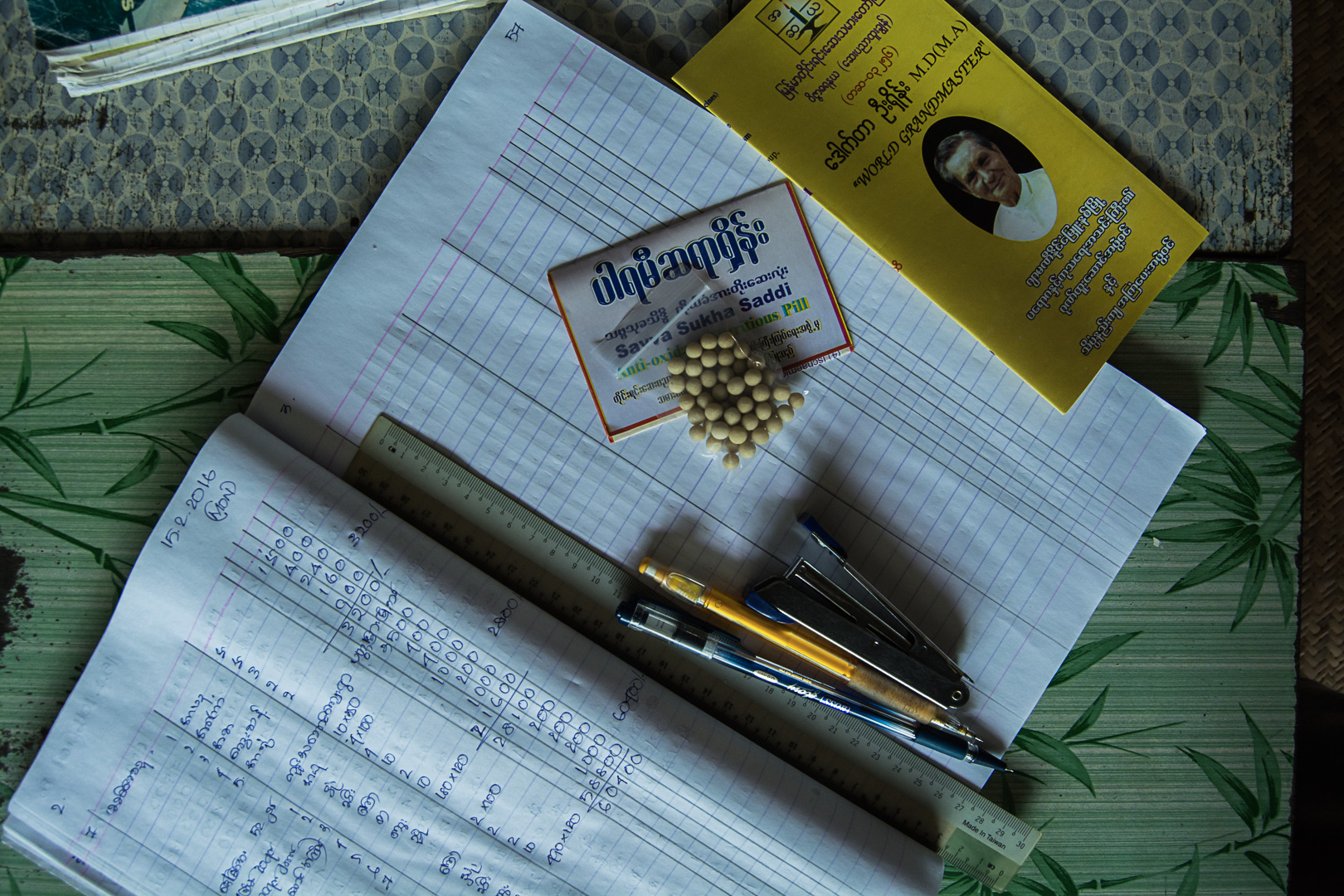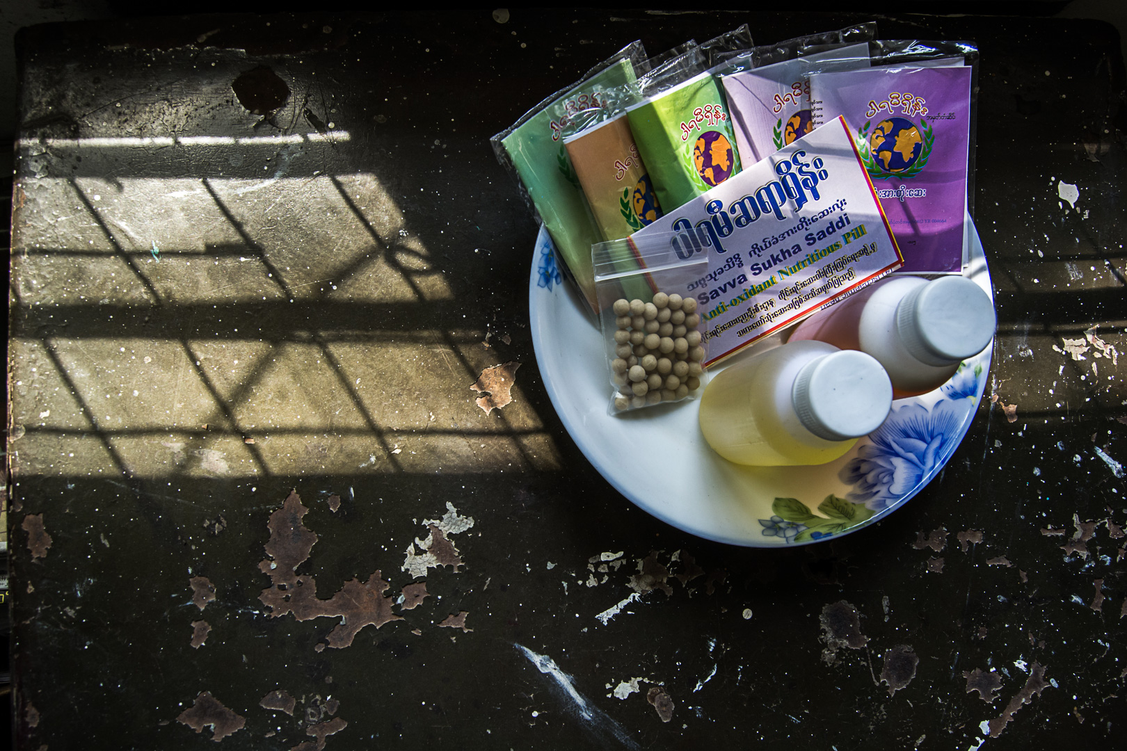 Ο U Win Maung, ένας σαμανιστής θεραπευτής στην Yangon, έφτιαξε μια μικρή πλαστική σακούλα που περιείχε σφαιρικά, μπεζ χάπια που όπως υποστηρίζει μπορούν να θεραπεύσουν τον καρκίνο, το AIDS και την ελονοσία.
