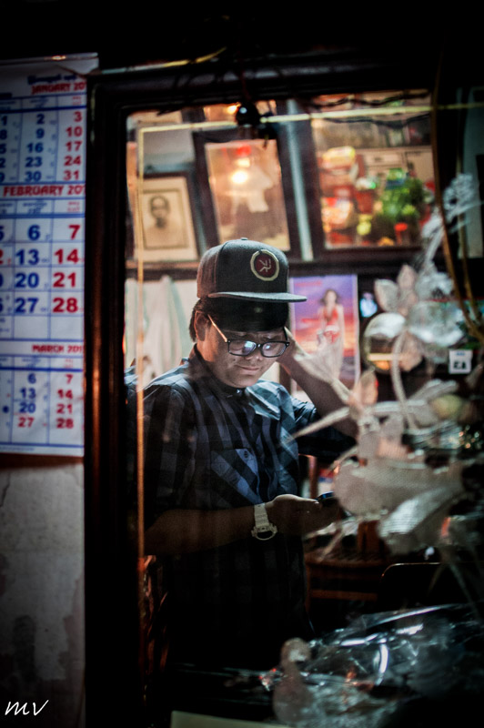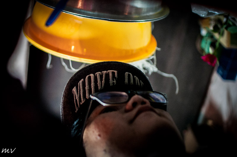 He is 19 years old and he is wearing a hat with a hip-hop street style with the sign “move on”. He likes loud music, and this is what made me knock his door.