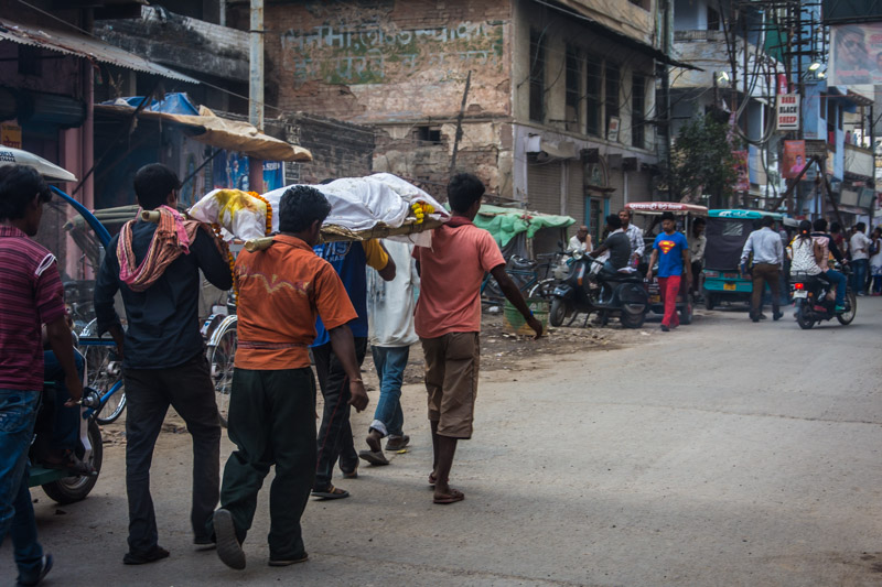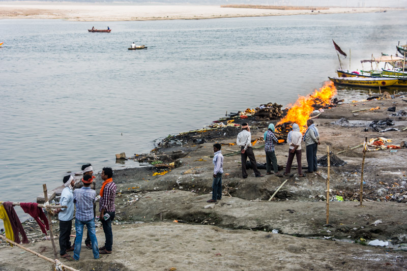 the burning ceremony and honour the dead person on the Ganges River that is